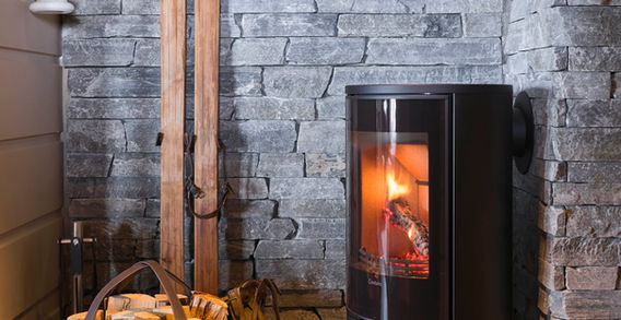 "Nytt" ildsted med børstet skifer – ferdig tilpasset for enkel montering.
